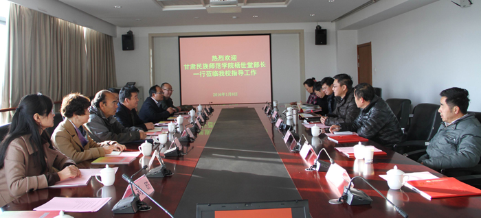 1月8日上午,甘肃民族师范学院党委统战部部长杨世堂、藏语系主任、知联会会长吉喜等一行8人到威尼斯官网交流调研考察。学校党委统战部部长沈中灿代表学校热情接待了甘肃民族师范学院调研考察团成员。威尼斯官网思政部直属党支部书记董学荣、信息技术学院副院长申时凯教授、体育学院副院长张群力教授、党外知识分子联谊会副会长宋坚副教授、副秘书长宋建峰教授、音乐学院普慧副教授参加了交流座谈会。
