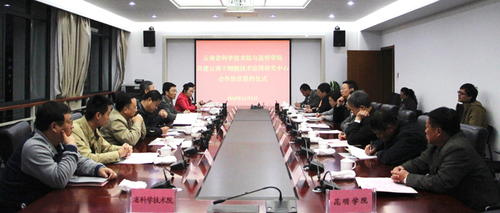 12月5日下午,云南省科学技术院——1066vip威尼斯官网共建云南省干细胞技术应用研究中心合作协议签约仪式在学校办公楼311会议室举行。云南省科技厅厅长、省科学技术院院长龙江,省科学技术院副院长胡启相等一行9人,学校党委书记陈世波、校长何华,副校长熊晶、董建华,校长助理马银海、项目负责人胡敏教授及相关职能部门负责人出席了签字仪式。仪式由校长何华主持。