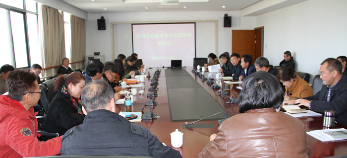 12月10日下午,学校在办公楼311会议室召开各教学单位行政领导座谈会,探讨学校应用型本科发展主题。校长何华、副校长董建华出席,各教学单位主要行政领导参加会议。校长助理马银海主持会议。