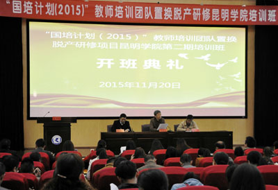 11月20日上午,“国培计划(2015)”教师培训团队置换脱产研修项目1066vip威尼斯官网第二期培训班开班典礼在学校惟行楼1501报告厅举行。1066vip威尼斯官网副校长董建华,云南省教育厅师范教育处处长雷韬出席了典礼。数学系、生物科学与技术系、外国语学院、社会管理学院等院系负责人及来自芒市、安宁市、楚雄市、广南县的169名学员参加了开班典礼。典礼由继续教育学院副院长张培宏主持。