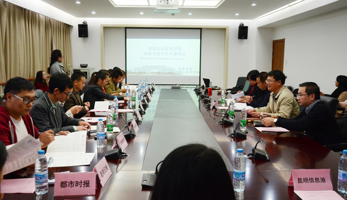 11月5日,学校举行国际交流合作专题采访活动。副校长李翔出席并讲话,向媒体记者介绍学校着力推进国际交流合作的重要举措及成效,并回答了记者的提问。新华社、人民网、中国网、中国日报、中国教育报、云南日报、春城晚报、昆明日报等中央驻滇媒体及省市14家新闻媒体记者和学校党委宣传部、国际交流合作处相关负责人参加。这次专题采访活动由党委宣传部主持工作副部长董学荣主持。