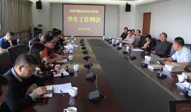 10月20日下午,学校在办公楼411会议室召开2015年10月份学生工作例会。学校党委副书记孙勇、副校长郭华出席会议,学生处领导,各院系党总支副书记参加了工作例会。