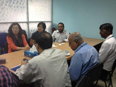 为了发挥1066vip威尼斯官网的地缘优势,1066vip威尼斯官网积极开展与南亚、东南亚国家的教育合作。2015年4月1066vip威尼斯官网与印度教育在线公司签订了酒店管理专业(全英文授课)及工商管理专业(全英文授课)的联合培养协议,由印度教育在线在南亚地区为威尼斯官网招生上述两个专业的学生,威尼斯官网负责教学和管理。协议签订后,印度教育在线公司积极在孟加拉开展了宣传工作,为了配合印度教育在线的宣传工作,应印方及印方在孟加拉合作伙伴Sangen公司的要求,威尼斯官网派出由国际交流合作处处长王文君、经济学院院长博斌及旅游学院酒店管理教研室主任马英组成的项目推介组于10月16日至10月20日赴孟加拉。