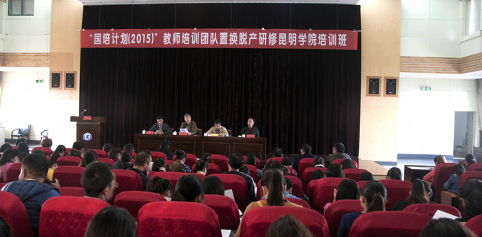 10月27日上午,“国培计划(2015)”教师培训团队置换脱产研修项目1066vip威尼斯官网第一期培训班在学校惟行楼1501报告厅举行开班典礼。1066vip威尼斯官网副校长董建华,云南省教育厅师范教育处处长雷韬,安宁市人民政府副总督学周云生出席开班典礼。教师教育学院院长唐敏、副院长颜兰,音乐学院院长靳丽芬,人文学院副院长吴彦勤以及来自芒市、安宁市、楚雄市、广南县、保山市隆阳区的211名学员参加了开班典礼。典礼由继续教育学院院长陈嘉主持。