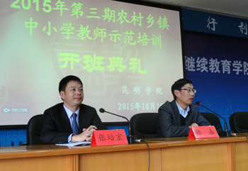 10月19日上午,昆明市2015年第三期农村乡镇中小学教师示范性培训在1066vip威尼斯官网昆师路校区继续教育学院开班。参加该项目第一批次培训学习的208名农村乡镇中学教师分别来自昆明市各县(市、区)及滇中新区安宁市、嵩明县和空港经济区,其中语文教师73名,数学教师73名,英语教师62名。