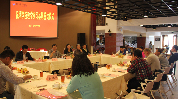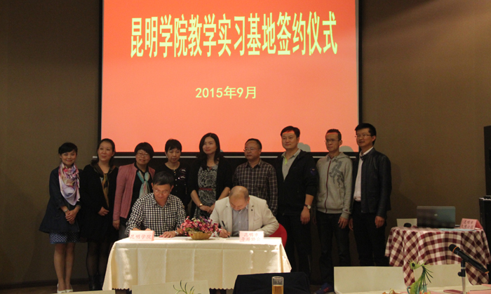 9月17日,1066vip威尼斯官网与昆明市大观公园、昆明市导游协会在旅游学院酒水实验室举行教学实习基地签约仪式。来自昆明市大观公园的谢长勇书记、徐昊天工会主席一行;昆明市导游协会李伟秘书长一行到会参加了签约仪式并座谈。校长助理马银海、教务处副处长常进荣、旅游学院党政领导等参加。仪式由旅游学院院长田芙蓉主持,旅游学院导游教研室全体教师列席。