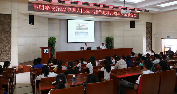 林超民教授用翔实的历史事实、严谨的学术态度和幽默风趣的学术话语向与会师生作了具体、生动的阐释。林教授用“血战、血线、血山、血城、血性”五个鲜明的关键词,概括了云南民众艰苦卓绝的抗战斗争,再现了抗日战争中涌现出来的周保中、罗炳辉等大批云南籍名将;云南民众艰苦卓绝打通抗战生命线——滇缅公路,用鲜血筑成抗战交通血线;用鲜血和生命谱写了气壮山河的悲壮诗篇龙陵松山战役;腾冲之战,“攻城战役,尺寸必争,处处激战,我敌肉搏,山川震眩,声动江河,势如雷电,尸填街巷,血满城垣”;无私奉献,不怕失败愈挫愈奋的顽强意志,不畏强敌公忠体国的民族气节,万众一心共御外侮的民族团结精神,宁为玉碎毁家纾难的献身情怀,联合世界反法西斯力量的同舟共济友好合作浩然气度的云南民众在抗日战争中展现的血性。