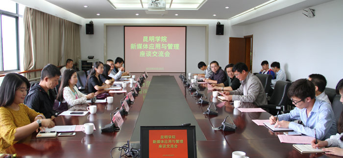 学校党委宣传部、团委、人文学院负责人,负责1066vip威尼斯官网微信公众平台、昆院人生活圈、团委微信公众平台、昆院校报微信公众平台的学生参加座谈交流,分别介绍了微信等新媒体的应用和管理情况。