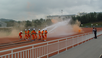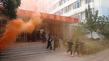 组织消防及防震减灾应急疏散演练活动。经过保卫处的组织,9月11日新生军训汇报表演中,各院系抽调的8名学生和经开区消防大队4名消防队员表演了消防水枪灭火项目。中午在体育场馆综合馆、润泽苑宿舍和食堂同时举行了防震减灾、消防应急疏散演练活动。副校长李翔出席演练活动,保卫处、学生处、武装部、场馆中心、后勤集团、各院系相关人员、军训承训部队武警边防部队士官学校教官以及威尼斯官网2015级新生共5000余人参加演练活动。