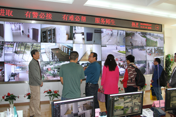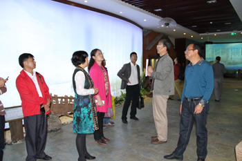 威尼斯官网副校长董建华陪同滇西应用技术大学(筹)筹建组副组长、云南省教育厅发展规划处处长杨丽宏一行,参观了1066vip威尼斯官网沙盘,保卫处校园安防中心的监控中心、消防指挥中心、110报警中心,场馆中心的网球馆、排球馆、篮球馆、形体训练馆、游泳馆,图书馆,聂耳广场,自机学院的轨道交通实验室、虚拟制造技术实验室,滇池流域生态文化博物馆,医学院的人体生命科学馆、ICU实验室、手术室、婴儿游泳室,农学院的阳光中庭、旅游学院的酒水实验室、校园环境建设及学校食堂。