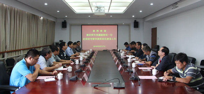 9月17日下午,德宏师专副校长党颖一行来威尼斯官网考察交流信息化建设工作。威尼斯官网副校长李翔等人陪同参观学校后,就信息化建设工作开展交流座谈。