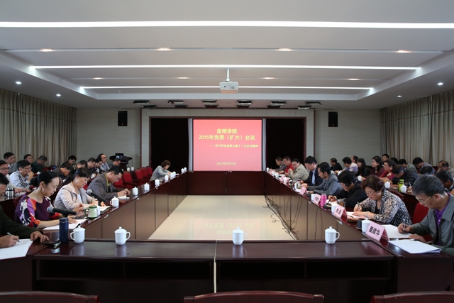 党委书记陈世波主持会议并讲话,对学习贯彻省委九届十一次全会精神和新学期开学工作提出了要求。一要充分认识贯彻落实全面从严治党、建设高素质干部队伍的极端重要性和紧迫性。全校各级党组织、全体党员和广大师生要认真学习领会省委九届十一次全会精神,以党风建设带动校风、教风和学风,推动学校全面深化改革和转型发展。中央和省委的要求,总的来说是更严了、更高了。全面从严治党,对云南具有特殊重要意义。高校总体较好,但也不能放松学习、教育。全面从严治党不是与我们无关,我们一定要严格起来,领导干部自己首先要做好,同时要加强对教职工和学生的教育。中央和省委的精神,不是我们这里传达学习了就万事大吉,一定要向教职工和学生讲清楚。我们的学生,今后要担当重任,我们必须认真负责地把他们培养好。二要把握全面从严治党要求,坚定理想信念,解决好“总开关”,抓好领导干部队伍建设。有些领导干部出了问题,往往就是没有解决好“总开关”问题,理想信念动摇,忘本变质,做了点事情就要求回报,为亲友和身边工作人员谋取私利,结果害人害己。我们一定要把讲规矩、守纪律提到更高的要求。领导干部要高标准、严要求,带头抓好落实,率先垂范,不该说的、不该做的坚决不做。许多革命前辈令人景仰,为我们树立了榜样,深受人民群众爱戴。一定要按照“三严三实”和“忠诚干净担当”要求严以律己,进一步营造风清气正的良好政治生态。三要严明党的纪律,把纪律提到前面,把要求落到实处。要进一步严肃党的纪律,加强学习宣传党的政治纪律、组织纪律等,严格遵守各项行为准则,纪委抓好监督落实。四要深入推进“三严三实”和“忠诚干净担当”专题教育,切实解决存在问题。学校专题教育总体抓得很好,但少数干部的行为还有差距,一定要认真反思,对照检查,找准问题。反映问题要实事求是;有的干部不敢担当,不主动谋划学校发展;有的干部对党委的决定贯彻落实不到位;有的干部对工作不负责任,受到上级部门的批评。五要树立正确的用人导向,培养选拔一批好干部。学校干部工作总体很好,但要进一步转变辛辛苦苦、老老实实干活的人无人关心的状况,该培养的要培养,该提拔的要提拔,该任用的要任用。六要加强监督,从严管理干部,强化干部自律。学校出台的一些管理规定,有的干部开始感到厌倦;重大事项报告、档案材料填写,有的干部过去比较随意;“三项整治”中,国有资产管理也还存在一些问题,等等。党的十八大以来,中央、省委和学校都出台了更加严格的要求,所有领导干部,都必须时刻把纪律、规矩放在心上,体现在行动上,时时刻刻都要想到自己是领导干部,必须严格要求自己。七要坚定不移惩治腐败。腐败必须严惩,更要加大宣传教育,要健全惩治与预防腐败体系,教育、制度、监督相结合,在使人不敢腐、不能腐、不想腐上下功夫,确保建设一支高素质的干部队伍。同时,要认真做好新学期开学和安全工作。要严格按照教育厅要求和学校的安排做好工作,对老师、对学生认真负责,加强对学生的教育管理;要保持良好的校园环境,真正把校园当家园建设;要加强安全保卫工作队伍建设,加强外来人员管理,做好反恐工作;要认真做好“六五”普法检查验收、新生入学教育、军训等工作;要严肃劳动纪律,以良好的精神面貌迎接新学期开学。