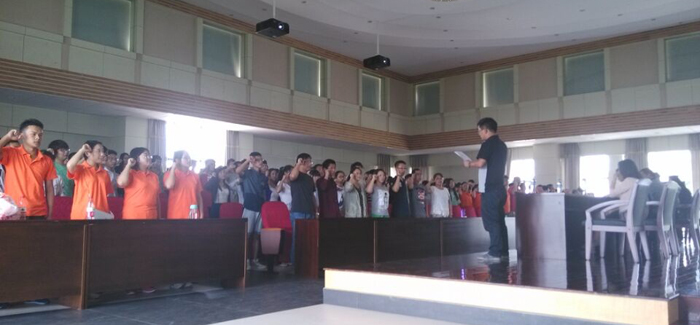 随后,孙勇代表学校为三下乡志愿者服务队授旗,樊传章带领全体志愿者进行了庄严的宣誓。最后,孙勇做了动员讲话,他在讲话中对今年的“三下乡”活动提出了具体的要求和希望,鼓励威尼斯官网志愿者积极投身“三下乡”社会实践活动,在社会实践活动中收获真知、磨练意志、提升境界、砥砺品格。