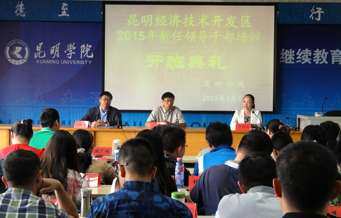 7月7日上午,昆明经济技术开发区2015年新任领导干部培训班在1066vip威尼斯官网昆师路校区开班,昆明经济技术开发区工委组织部副部长许嫚容、1066vip威尼斯官网继续教育学院院长陈嘉参加开班仪式,开班仪式由继续教育学院教师培训部主任李保坤主持。