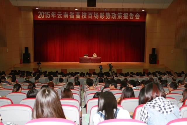 6月19日下午,学校2015年云南省高校百场形势政策报告会在学生会堂举行。中共云南省委党校、云南行政学院党委委员、公共管理教研部主任欧黎明教授应邀为威尼斯官网师生作题为“全面从严治党与高校党的建设”的专题报告。学校党委副书记孙勇、副校长李翔、中层干部、学校思想政治教育宣讲团成员、各党总支(直属党支部)师生党员代表共1300多人参加报告会。