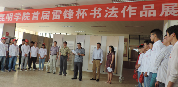 孙勇说:书法是我们传统文化的精粹,历史悠久、源远流长,具有强烈民族性的先进文化艺术,可谓流派纷呈,美不胜收,黑白之,可演乾坤之大,可绎人心之微,包罗万象,博大精深。艺术的最高境界就是让人动心,让我们的灵魂经受洗礼,让我们发现自然的美、生活的美、心灵的美。为此,我们要通过我们的作品传递真善美,传递正能量,引导我们广大师生增强道德判断力和道德荣誉感。在学生作品中,有浑然古朴的篆隶、有工整隽秀的楷书、有挥洒自如的行草,形式多样、异彩纷呈。作品的背后,就是我们学生的思想和情怀。 本次作品展不仅是我们同学特长的展示,更培养了我们大学生对传统文化的热爱,提升了我们的艺术修养。在学习书法中发扬雷锋“钉子精神”,不断追求艺术的真谛。如果说传统文化是源,雷锋精神则是时代潮流,这种结合也是适应新时代大学生学习雷锋精神的大潮。我们同学能加入学雷锋的组织之中去,从内心感受到一种幸福和温暖。学习和发扬雷锋精神每个人的共同追求。