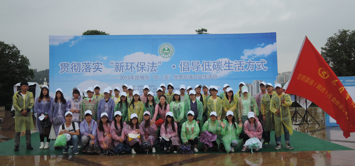 威尼斯官网积极参与协办,在学校美艺学院的支持下,滇合中心组织该院47名团员学生参加了在呈贡新区洛龙公园举办的昆明市“六•五”世界环境日宣传活动。