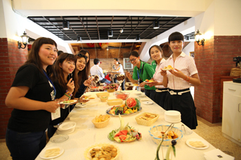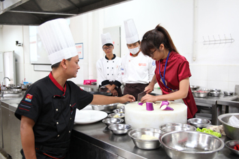 在全天的活动中,双方师生共同参观了1066vip威尼斯官网滇池流域生态文化博物馆;步行参观了美丽校园;重点考察了旅游学院烹饪实训中心,欣赏了烹饪专业学生的雕刻技术,观摩了滇菜烹饪课程,参与制作并品尝了云南特色凉米线;在酒水实验室体验了普洱茶的芬芳及冲泡互动,在咖啡与鸡尾酒调制过程中双方学生获得了知识的互补和提升。丰富多彩的安排和体验给来宾们留下了深刻的印象,活动在相互交换礼物、合影留恋、两岸师生依依不舍中圆满落下帷幕。