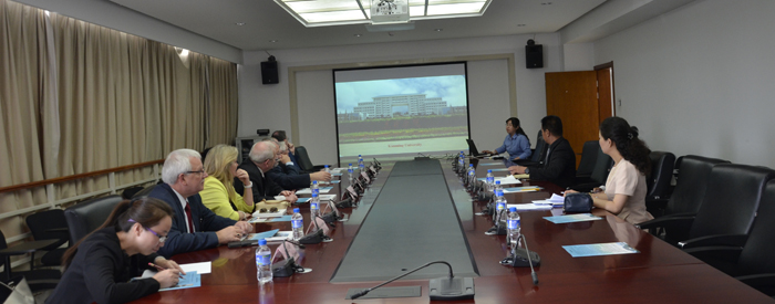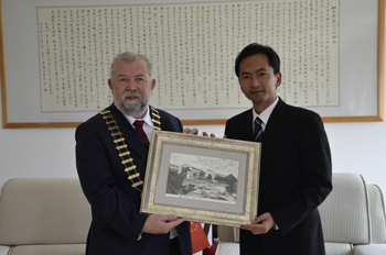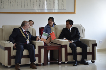 参观结束后,何华校长代表学校会见克莱尔郡郡长一行。何华首先对郡长一行的到来表示欢迎及感谢,随后全面介绍了学校的情况,希望能依托爱尔兰中心把学校办得更好,让更多的中国学生感受爱尔兰的风采。郡长对威尼斯官网的接待表示感谢,并希望以后双方加强合作,更好地推动爱尔兰中心的工作,并希望在适当的时候校长能访问克莱尔郡。