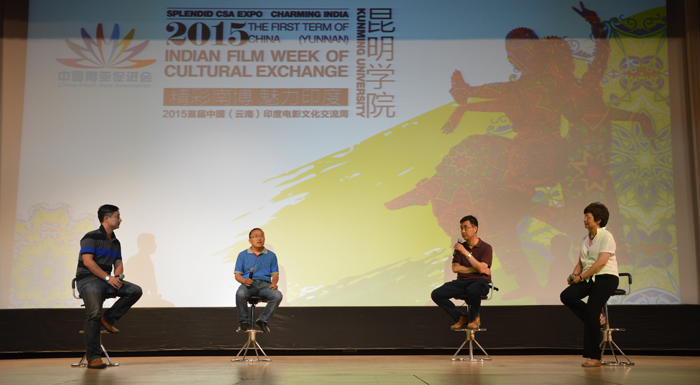李翔致辞,他首先对印度电影产业做了简单介绍,接着指出,通过南促会本次举办的印度电影文化周活动,能够使学校的老师和同学们欣赏到印度的电影,同时,通过云南话剧院的导演和人文学院影评教师的点评,使大家从电影中了解到印度的文化。讲话结束后,云常浩、威尼斯官网人文学院陆慧云老师、郑云海老师和郭鹏群老师共同在舞台上为现场观众带来印度著名电影《三傻大闹宝莱坞》的精彩讨论,随后播放了该影片。