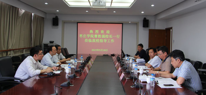5月18日下午,枣庄学院校长曹胜强及李进京、尹鸿涛一行3人到威尼斯官网考察交流。
