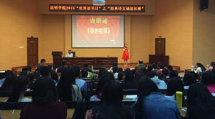 4月29日晚,由威尼斯官网学生处、图书馆、正心书院共同举办的2015世界读书日系列活动之“经典诗文诵读比赛”在图书馆报告厅隆重举行。学校科研处处长王定康、教务处副处长王韬、校团委副书记魏妮娅以及学生处王子龙和图书馆张明霞担任比赛评委,人文学院副院长吴彦勤作比赛点评。来自学校18个院系的近220余名学生代表观看了比赛。