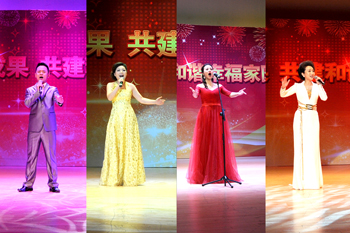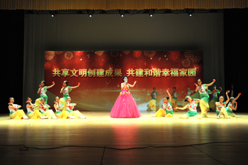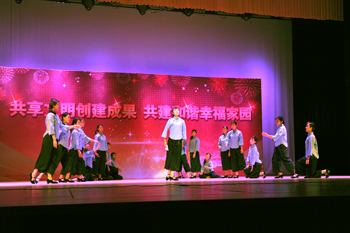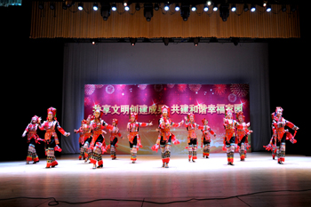 随后,一首旋律优美的《欢歌满家园》歌舞拉开了庆祝晚会序幕。由音乐学院、教师教育学院、校工会、校团委大学生艺术团、体育学院共同上演的《喀什葛尔女郎》、《回家》、《最美的风景是文明》、《致祖国》、《永不放弃》、《感谢朋友们》、《文明在哪里》、《共圆中国梦》、《炫彩拉丁》、《美丽中国》、《花腰花》、《举杯吧,朋友》等精彩节目,表达了全校师生庆祝荣获全国文明单位的喜悦之情和对1066vip威尼斯官网的美好祝福,最后一首《举杯吧,朋友》歌伴舞把晚会喜庆氛围推向了高潮。师生们精彩的歌舞表演,为大家献上了一份异彩纷呈、多姿多彩、韵味十足的视觉盛宴。