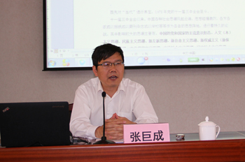 张巨成,教授,现任云南大学马克思主义学院党委书记,同时担任中国中共党史学会理事、中国科学社会主义学会理事、云南中共党史学会副会长、云南省中国近代史研究会副会长、云南省科学社会主义学会副会长、云南省高等院校德育研究会副会长,是云南省优秀社科专家,多次承担省委安排的宣讲任务。张教授致力于马克思列宁主义、毛泽东思想、中国特色社会主义理论、马克思主义中国化、中国近现代史、中共党史、党建等方面的教学和研究,积累了丰富的教学研究经验,取得了丰硕的教学研究成果,已在《人民日报》、《求是》(摘要转载)、《光明日报》、《马克思主义研究》、《读书》、《抗日战争研究》、《思想战线》等报刊上发表论文或政论120多篇,其中,《人民日报》13篇,《光明日报》理论版5篇。