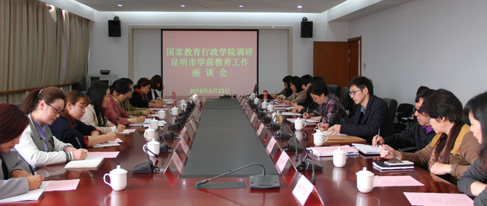 3月23日,国家教育行政学院副院长李五一、教育行政教研部副教授李改、教育管理杂志社总编室主任舒刚到威尼斯官网举办昆明市学前教育工作座谈会。昆明市教育局副局长蒋坚桥、学前教育专干李晏梅,昆明市教工第二幼儿园、海贝中英文幼儿园、小天使幼儿园、呈贡区风华俊园幼儿园、海贝中英文幼儿园的园长和教师代表,威尼斯官网教务处副处长王韬,教师教育学院的全体领导及部分教师参加了座谈。威尼斯官网副校长熊晶出席并主持会议。
