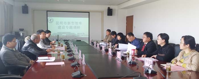 应调研组要求,科研处副处长吴瑛汇报了2009年以来1066vip威尼斯官网推进“智库型”研究机构建设,在县域经济、旅游规划、滇池(流域)生态文化、跨境经济、都市农业以及人口发展6个方面形成了一定的优势特色,对政府决策发挥积极咨政作用的总体情况。科发院办公室主任管彦平介绍了科发院的目标定位、路径举措以及建设成果。并详细介绍了科发院在获得云南省高校智库立项培育建设后,对智库运行机制、体制创新的探索和思考。科发院办公室副主任黄继元介绍了科发院将要出版咨政蓝皮书的计划和打算。泛亚院办公室主任李跃波介绍了泛亚院紧扣国家“桥头堡”战略、“一带一路”倡议以及孟中印缅经济走廊开展研究,开展学术合作与交流的情况。滇合中心办公室主任钱春萍介绍了中心对昆明民间智库建设的系统研究以及中心在以博物馆建设促文化传承、以专家库、开放平台建设发挥外联内引作用等方面所作出的积极努力与尝试。物联网中心办公室主任申时凯介绍了中心在物联网、大数据开发建设以及为智库建设提供科学量化分析与云数据支撑的基础与条件。农学院代表华金珠老师介绍了农学院以都市农业工程中心建设推进现代农业的情况。同时,大家对地方新型智库建设提出了对内整合对外联合、搭建政产学研合作平台、完善多方参与研究机制、建设数据和信息共享平台、开展重点培育和支持等等建议。