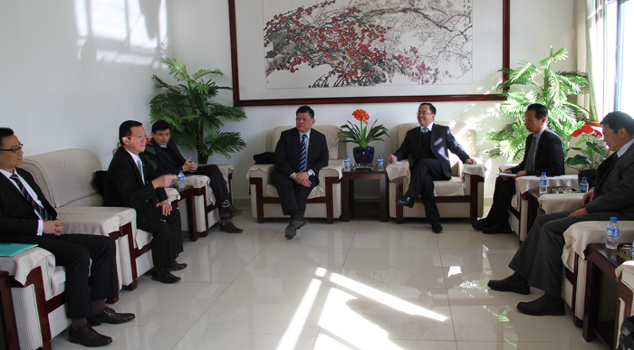 签约仪式前,蒋永文校长、李翔副校长与希尔顿嘉宾在办公楼D区三楼贵宾室座谈交流。