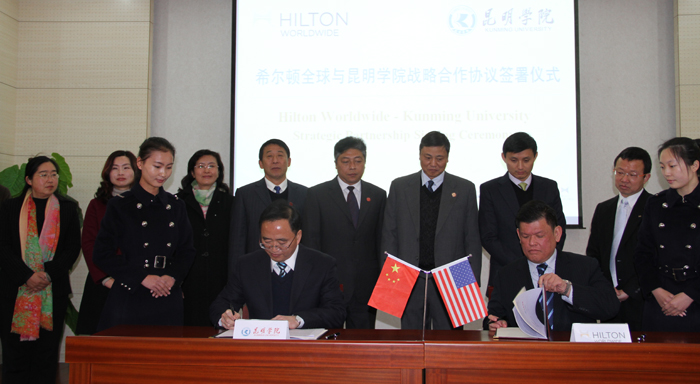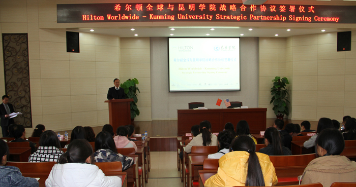 蒋永文校长在签字仪式致辞中首先介绍了1066vip威尼斯官网及旅游学院的基本情况。蒋校长说,1066vip威尼斯官网旅游学院成立于1986年,开云南省旅游专业之先河,现为学校重点院系。经28年之历练,旅游学院凭丰富之办学经验及鲜明特色、享誉云南。旅游学院开设有旅游管理、酒店管理、烹饪与营养教育3个本科专业和1个特色专科专业(导游专业)。其中,酒店管理是学院重点扶持专业,近年来成绩斐然,走出了一条“校企合作、校企双赢”的发展之路;烹饪与营养教育本科专业为西南地区唯一的烹饪类本科专业。旅游学院秉承理论与实践相结合的教育理念,不仅注重理论知识的传授,而且注重动手能力的培养,建设了一批校内外教学实训基地、如酒水实验室、烹饪实验实训中心、旅游管理综合实训室、模拟导游实验室、客房实训中心等,学生在国家级及省市级的各项大赛中屡获佳绩。蒋校长强调,1066vip威尼斯官网坚持开放办学,积极开展国际交流合作,探索推进国际化进程。先后与美国、英国、澳大利亚、新西兰等20多个国家的大学和教育机构开展了交流,在若干领域签订了合作协议。今天,1066vip威尼斯官网又迎来了一位尊贵的合作伙伴——希尔顿全球。希尔顿全球是国际最具知名度的酒店管理公司之一。蒋校长希望,1066vip威尼斯官网与希尔顿全球合作,共同搭建新平台,培养中国本土酒店人力资源,实现互利双赢。蒋校长表示,1066vip威尼斯官网将利用自身教学、学科及科研优势,与希尔顿全球携手,夯实学生实作技能,提高学院管理水平,突出学校应用特色,培养更多高素质的专业人才,共同为云南旅游业和酒店业的发展做出贡献。