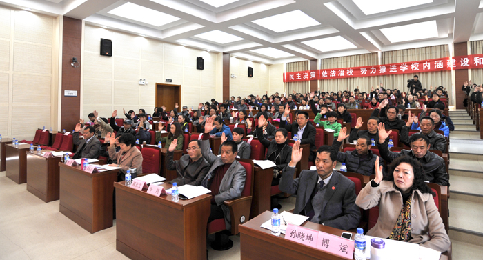 1月30日上午9点,党委副书记孙勇主持召开第二次全体会议。按照议程,会议表决通过了《1066vip威尼斯官网工会第二届会员代表大会选举办法》,选举产生了1066vip威尼斯官网工会第二届委员会委员、经费审查委员会委员,表决通过了1066vip威尼斯官网第二届教代会执行委员会委员及教代会各专门工作委员会委员建议名单、1066vip威尼斯官网第二届工会女工委员会委员建议名单,表决通过了学校行政工作报告决议,学校财务工作报告决议,1066vip威尼斯官网第一届教代会、工会工作报告决议,第一届工会经费审查委员会工作报告决议,表决通过了《1066vip威尼斯官网章程》和《1066vip威尼斯官网教职工代表大会工作细则》。