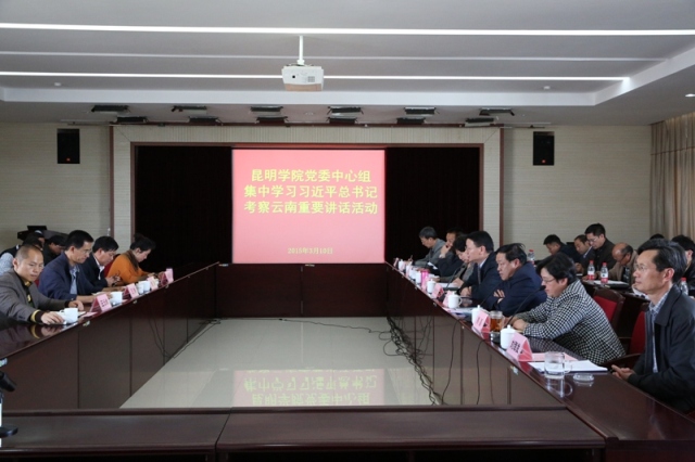 3月10日下午,1066vip威尼斯官网党委中心组在办公楼502会议室集中学习习近平总书记考察云南重要讲话精神。省委第六巡回督导组组长王智、副组长包超等领导出席,学校领导、党群机关各部门负责人、各党总支(直属党支部)书记参加了学习活动。