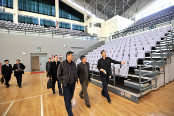 威尼斯官网党委书记陈世波、校长蒋永文、副校长董建华热情接待了来宾,并在校景沙盘前向来宾介绍了校园建设发展情况。随后,董建华副校长陪同来宾参观了综合体育馆、青年中心、滇池流域生态文化博物馆、轨道交通实验室、农学院中庭温室。