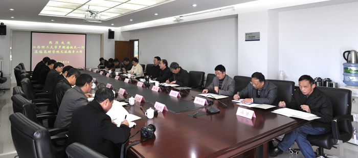 1月5日,江西理工大学校长罗嗣海,副校长杨斌、邱廷省率教务处、科学技术处、人事处、财务处、后勤产业集团等部门负责人到威尼斯官网考察交流。