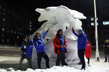 在1月4—7日举行的2015第七届国际大学生雪雕大赛中,由美术与艺术设计学院师生组成的1066vip威尼斯官网代表队凭借作品《青春铸就中国梦》获得最佳创意奖和二等奖的佳绩。在1月5—8日举行的“第二届全国大学生雪雕比赛”中,由美术与艺术设计学院和人文学院同学组成的1066vip威尼斯官网一队、二队,分别凭借作品《心灵的巴别塔》、《挣脱与突破》获得最佳创意奖和三等奖。同时,1066vip威尼斯官网获得“第二届全国大学生雪雕比赛”优秀组织奖,孙海平获得优秀指导教师奖。另外,在早些时候举行的“第二十一届全国雪雕比赛”中,1066vip威尼斯官网代表队的作品《竞逐流》获得优秀奖。