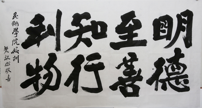 樊教授的现场书法展示,赢得了在场书法专家和书法爱好者的阵阵热烈掌声和赞赏、钦佩、羡慕、感激之情。随后,樊教授还欣然挥毫“知行合一”、“厚德载物”等墨宝赠予威尼斯官网,大家再次报以热烈的掌声,感谢樊教授为大家带来一场书法交流的盛宴,让大家对中国书法艺术及其所涵纳的人文情怀有了更进一步的认识和感悟。