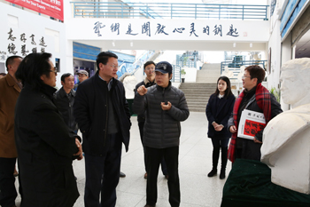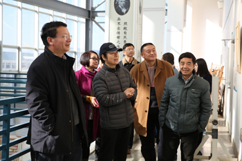 樊教授在陈书记和美术与艺术设计学院相关领导的陪同下,来到美术与艺术设计学院,饶有兴趣地一一参观了装饰、雕刻、剪纸等学生习作展品和雕塑、产品、服装等实验实训室,并深入教学课堂现场观摩教学情况。