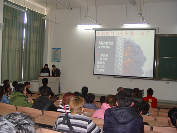 第二环节,保卫处邀请了昆明市火灾防治培训中心的李凤老师主讲消防安全知识。李老师运用PPT讲解了火灾的危害性,介绍了火场逃生自救的方法。一个个动态的火灾视频现场,一幅幅惨列的火灾图片,让留学生从听觉和视觉上留下深刻印象,引人深思,催人警醒。