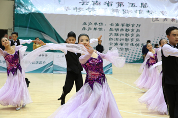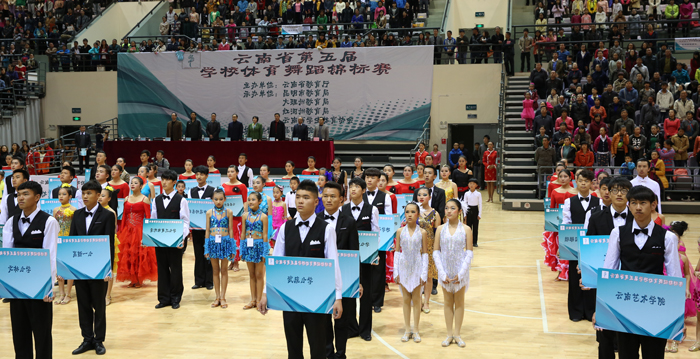 从大赛组委会(云南省学生体育协会体育舞蹈专业委员会主任、1066vip威尼斯官网体育舞蹈教研室主任)田应娟老师处获悉,2014年,为全面推进学校阳光体育活动,促进学校体育舞蹈推广普及,提升云南体育舞蹈教学水平和质量,云南省教育厅于2014年4月、6月和11月在全省学校系统开展“云南省体育舞蹈教室培训、学校体育舞蹈大课间展演比赛、第五届学校体育舞蹈锦标赛”三项活动。共有900余名体育舞蹈教室参加培训,343个学校、34300余名学生参加了大课间展演比赛,100多所学校参加第五届学校体育舞蹈锦标赛。其中第五届学校体育舞蹈锦标赛于11月初分别举行了大理赛区、昆明赛区和红河赛区的分区赛,来自全省16个州市都组织了大、中专院校、中小学和幼儿园参赛。经过分区赛的角逐,有77个学校的1000余名选手进入总决赛。本次大赛设有维也纳华尔兹、拉丁舞、牛仔舞、校园伦巴和恰恰5个项目类别,100多个组别。