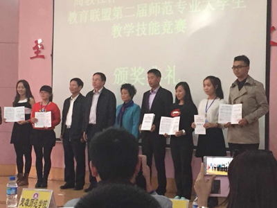 11月27日至29日,“高教社杯”云南省高等学校教师教育联盟主办的第二届师范专业大学生教学技能竞赛总决赛在玉溪举行。威尼斯官网音乐学院经过认真选拔,确定了音乐学专业2011级2班的李抗同学代表学校参加总决赛。音乐学院教师教育教研室主任朱静老师负责技术指导与培训,鲁林老师应邀担任评委。
