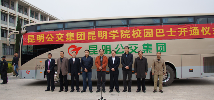 11月18日上午,昆明公交集团二公司1066vip威尼斯官网校园巴士开通仪式在学校举行。校长蒋永文、副校长董建华、后勤集团领导班子,昆明市交通运输局副局长袁俊,昆明公交集团有限责任公司总经理高永生、副总经理姜犹等领导,公交集团二公司员工、1066vip威尼斯官网学生代表参加了开通仪式。