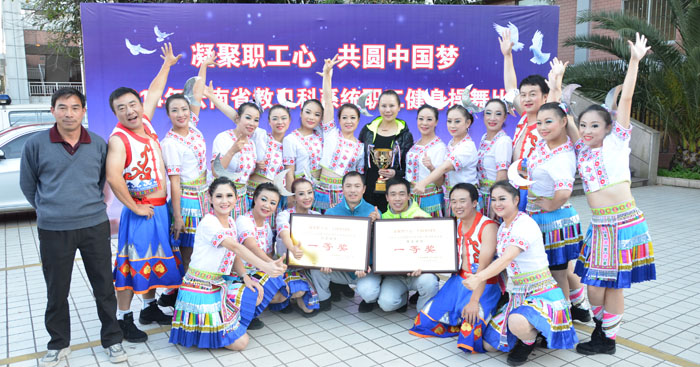威尼斯官网教职工代表队在刚刚结束的2014年云南省教育卫生科研系统职工健身操舞比赛中顽强拼搏,喜获佳绩,取得了两项一等奖和团体总分第三名。