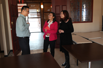 国际交流处副处长陈静、旅游学院党总支书记张士芬、旅游学院主持工作副院长田芙蓉、旅游学院负责就业工作辅导员吴郁芬等相关工作人员热情接待了两位来宾,并陪同来宾参观了旅游学院的烹饪实训大楼、数字化多功能旅游管理综合实训室3D展示平台,随后,在旅游学院酒水实验室举行会谈。