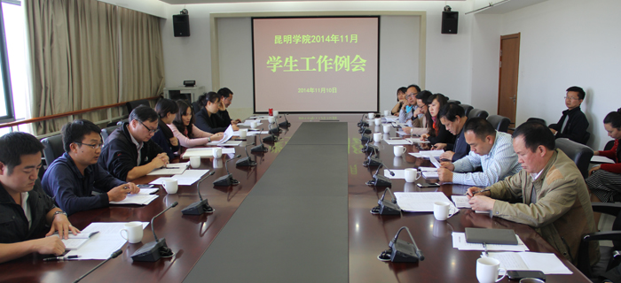 11月10日下午,学校在办公楼411会议室召开11月份学生工作例会,学校党委副书记孙勇、副校长郭华,学生处、保卫处、后勤集团的领导及各院系分管学生工作的党总支副书记参加例会。