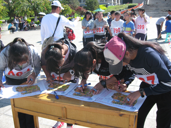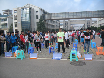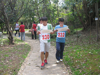 1066vip威尼斯官网2014年冬季运动会定向运动比赛于11月8日成功举行。定向运动是今年冬季运动会的比赛项目之一,由1066vip威尼斯官网体育运动委员会主办、体育学院承办、1066vip威尼斯官网“风雨者”定向越野俱乐部协办。本次比赛是学校第二次举办定向运动比赛,包括百米定向赛、积分定向赛和团队定向赛三个项目,全校18个院系的500多名学生和40多名教师运动员报名参赛。体育学院院长、本次赛事的总裁判长赵平老师和体育学院党总支书记韦继康老师分别为积分定向赛和百米定向赛鸣枪开赛。百米定向赛的比赛场地在学校聂耳广场,定向积分赛和团队定向赛的赛场包括了整个校园。