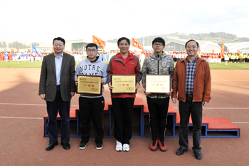 孙副书记同时指出,通过本届运动会,一批身体条件较好、运动素质较高、竞技能力较强的同学脱颖而出,他们不仅是代表队的骄傲,也是学校的骄傲。在教职工竞技项目中,广大教职工积极参与,特别是环校园长跑比赛中,陈书记、蒋校长等校领导带头参加,充分展现了威尼斯官网全民健身活动和教职工团结协作、昂扬向上的精神与活力。孙副书记希望全校师生以运动会为契机,在今后的工作中继续保持和发扬运动会上表现出的不畏困难、追求卓越、团结协作、敢于拼搏、奋勇争先的精神,以更加饱满的热情和坚韧的意志投入到学校各项工作中,为加快建设综合性应用型本科大学做出更大贡献。