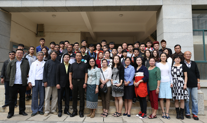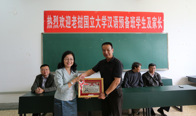李翔副校长在会上介绍了昆明市和1066vip威尼斯官网的基本情况,勉励留学生刻苦学习汉语,预祝大家顺利通过HSK考试并进入专业学习。Keomanivong PHIMMASENE女士也代表老挝国立大学对老挝同学提出殷切期望,对各国同学提出良好祝愿。会上,中老双方老师在亲切友好的氛围中互赠了礼物。