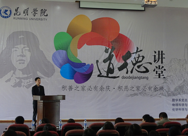 道德讲堂围绕威尼斯官网数学系2011级数学与应用数学专业师范1班的付贵帅同学为了营救落水同伴献出了他年仅20岁的年轻生命的事迹,开展“学习付贵帅同学,弘扬乐于助人的精神”道德讲堂,按照“唱歌曲、学模范、诵经典、发善心、送吉祥”五个环节进行。讲堂通过全体师生唱歌曲《爱的奉献》,观看由昆明电视台、昆明日报、都市时报等多家媒体联合专访付贵帅同学见义勇为事迹的新闻短片和由学校党委书记陈世波和校长蒋永文策化、熊副校长牵头录制的微电影《生命的托举》,听取他的班主任老师《怀念我的学生》,三个身边同学《我的老同学》《热爱生活的付贵帅》《助人为乐的高个子男生》的讲述之后,让参加讲座的同学们对付贵帅的英勇事迹有了深入的了解。让每一个年轻大学生的心灵受到了深深地震撼。在互动环节,三个系的同学争先恐后的畅谈自己的感受,特别是物理科学技术系付远旺、王振远同学“本来听讲座是报着来混的思想,后来深深被打动。道德养成是要从小善积成大善”的发言引发全体师生的深刻反思:生命是那么脆弱,不堪一击,生命是这样不可逆转,让人无法后悔。付贵帅学长的离去警醒我们要学会珍惜自己的生命,绝不能浪费生命里宝贵的时间,趁自己还年轻多做一些有意义的事情。生命不能重来,所以,要努力实现自己人生的价值。学习付贵帅学长身上的优秀道德品质。看事迹,想事情,学精神,从小事做起,从身边做起。去实践,去感染,去带动更多的人参与进来,为社会尽一份微薄的力量。